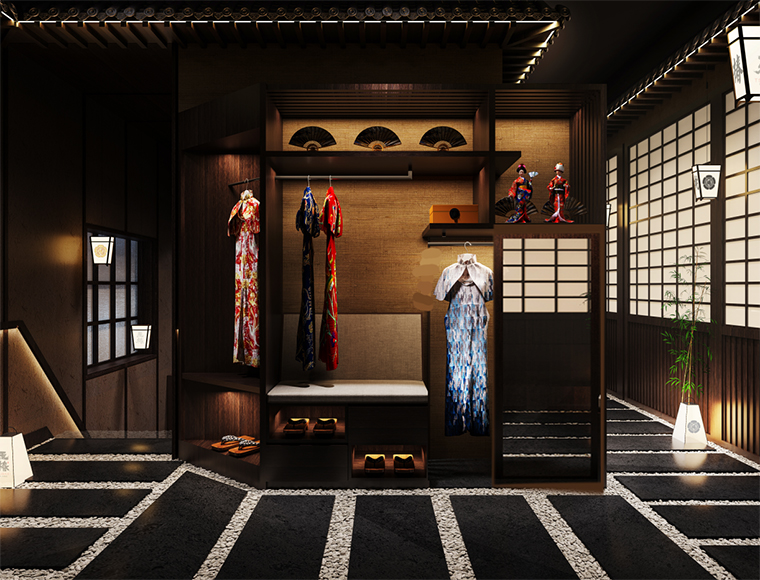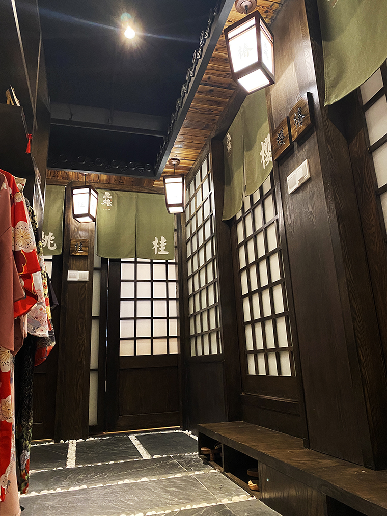 二樓除了必備的洗手間、儲物柜外,還設置了和服展示區,這是餐飲娛樂化的一大重要趨勢。