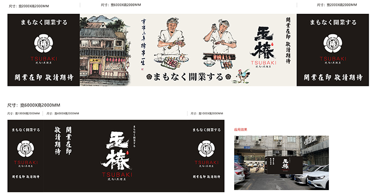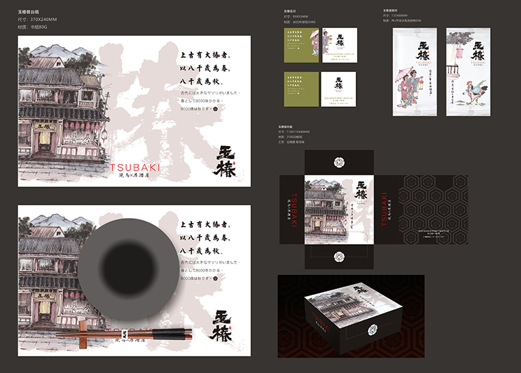 我們希望透過這個書法文字的LOGO標識及輔助的家徽圖案塑造玉椿經典的日式美學氣質和料理文化底蘊。表達品牌傳承百年,初心如一的愿景,使之成為指引玉椿品牌前進的燈塔。玉椿燒鳥居酒屋,將“