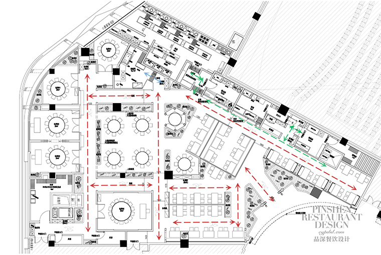 1、本項(xiàng)目為京味張東莞大朗碧桂園里悅里店,總面積約829平方米。用中國(guó)紅強(qiáng)化品牌內(nèi)含的北京皇城文化,令人印象鮮明;