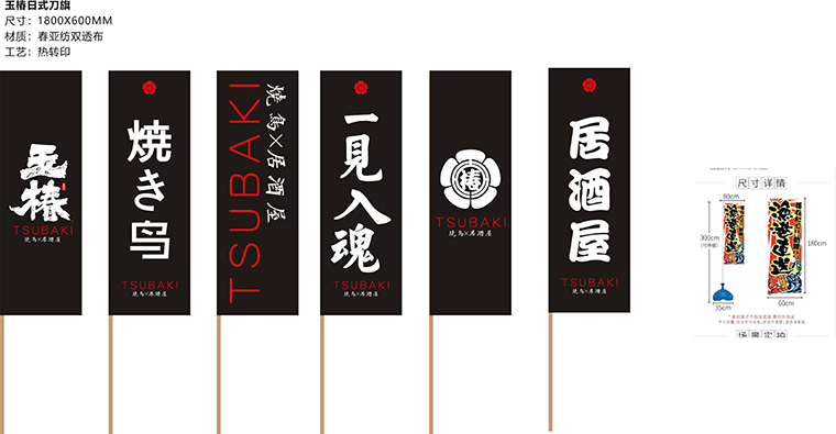 品牌記憶點:日本京都風格門頭設計+玉椿標識及家徽+燒鳥手繪畫面+四大主色調。